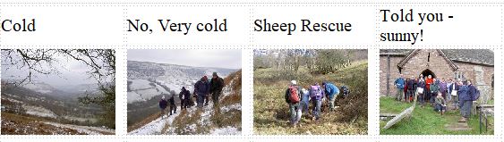 Llanthony in the cold – what fun we had on Lord Hereford’s knob. Then then ladies came along for Sunday and it was sunny. There is a picture somewhere of all the chaps on the Offa’s Dyke path above Llanthony. We are all sensibly wrapped up for the weather, but it was still very cold – having bought a platypus with him for the first time, one of our intrepid explorers found the tube was frozen solid!