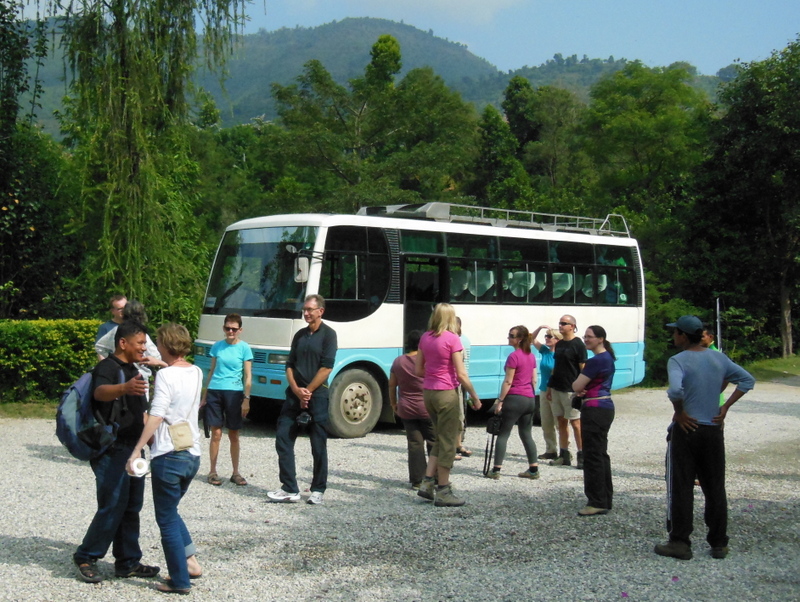 Arriving via Dubai it’s dark at the Hotel Singhi and the rest of the group are out bonding. We change our money into a ream of Rupees and enjoy our first curry and “Everest” beer (there’s a surprise) in the hotel restaurant. Meeting at breakfast the next morning we find the group are keen to meet us thinking we’re exotic having come from Dubai, but it’s just Exodus routed us that way. The coach trip is a real adventure, one half of the road is concrete the other gravel, you can overtake anywhere and we arrive at our base camp with our senses reeling from the sights and sounds of the journey.
