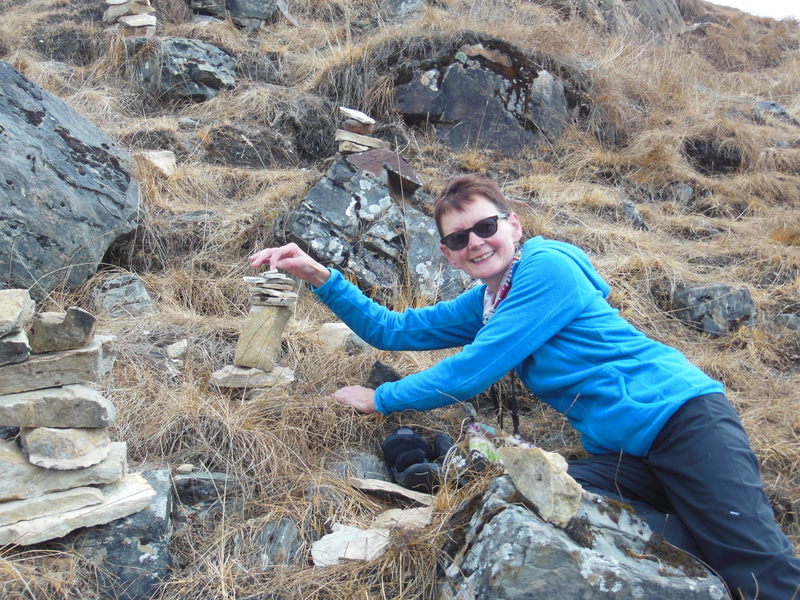 It’s beautiful. With terraces, flowers, only a few chickens but wonderful sunshine in the shadow of towering snow covered peaks, but it is getting colder as we ascend and we need our 3 season sleeping bags. We see porters carrying Pringles and Snickers bars to re-supply the teahouses, everything has to be carried on foot. We visit a school and a home and appreciate how hard life is – the Pringles (and the chickens by the way) aren’t for these folk who get by happily enough on buckwheat, rice and cabbages that make up the staple Dal Bhat. There is beer up here, but the altitude has affected our appetites and although we are all fine (sorry Rosemary), the smaller portions, great exercise and fresh air mean we find we don’t need or even miss it.