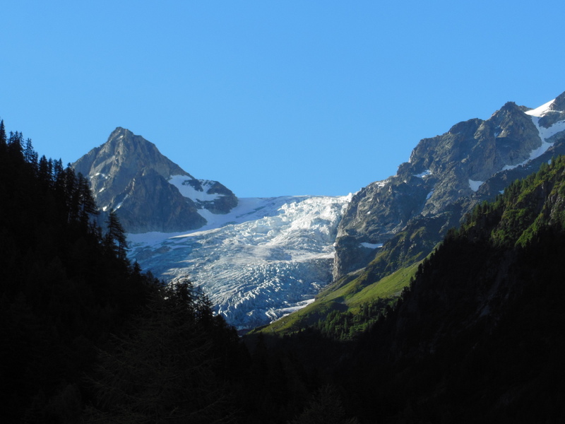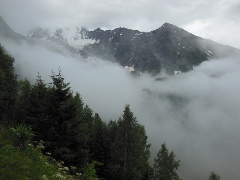 In all, crossing France, Switzerland and Italy before returning to France without the need for passports, we managed to make friends with some Kiwis but lost our Canadian friend three days in because of an unfortunate ligament ailment; we realised that anyone whose surname is Kelly is bound to be known as Ned; completed our Tai chi exercises before setting off; learned how to identify coniferous trees from cones and leaves; managed a number of table tennis and baby foot games; wore out any number of knee joints (<=2 per person); wild camped with some Dutch trekkers and their pack horses; de-camped to a bunk house pending imminent flooding; but all in all returned elated enjoying spectacular views and finishing with a true sense of achievement. Recommend the trip to anyone!