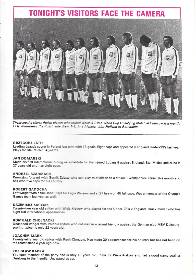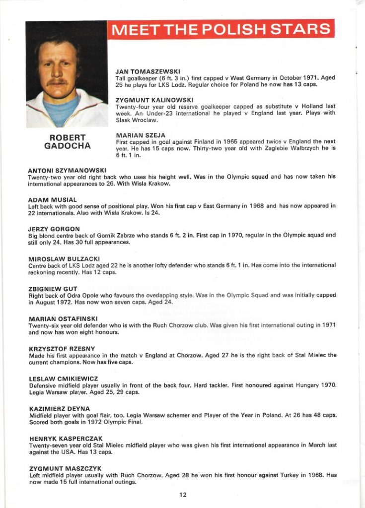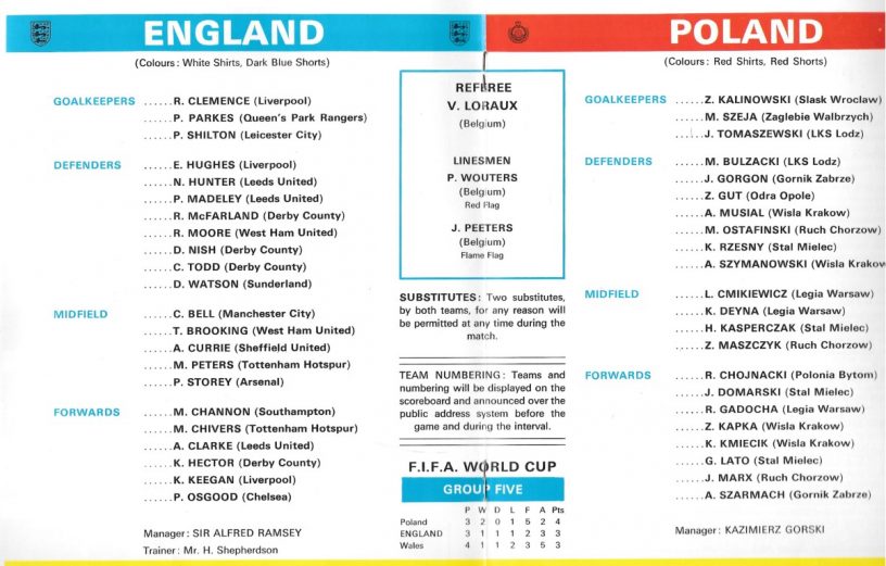 Derby’s Roy Macfarland was in the team as centre back, and County’s own Kevin Hector was brought on and missed a good chance, but England simply couldn’t overcome the Polish resistance. With Norman Hunter’s weak challenge giving Poland the ball on the half way line and Domarski’s shot squirming under the diving Peter Shilton, it was the mistake that turned the game.