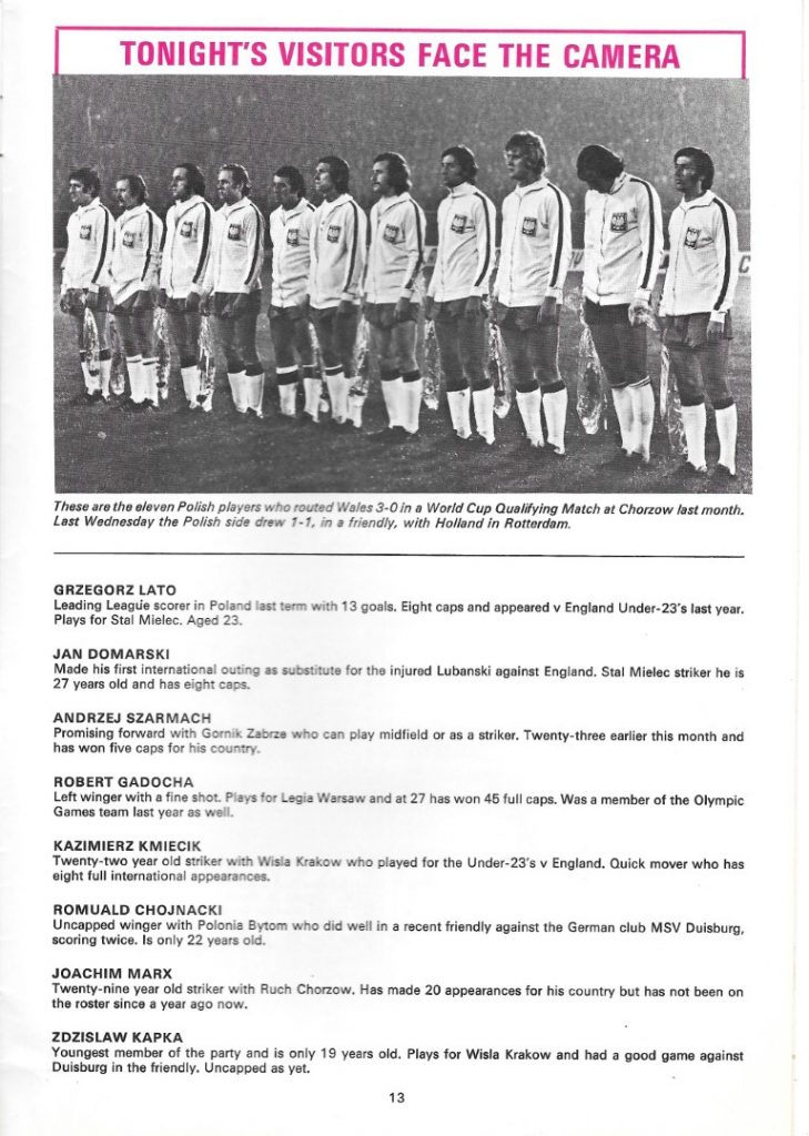 Pud & I bought 2 tickets ourselves for this Football World Cup Qualifier match and tagged along with the coach organised by the Polish Club. We bunked off school to go and found ourselves in general seating literally on the back row of the stadium. England drew, largely because of the efforts of Jan Tomaszewski, described by Brian Clough as a clown, and so didn’t qualify for the 1974 world cup to be held in Germany.