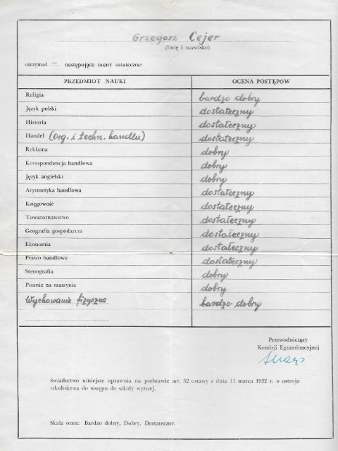 Matera then studied in Alessano (matura), Trade administration Gimnazium Handlowe