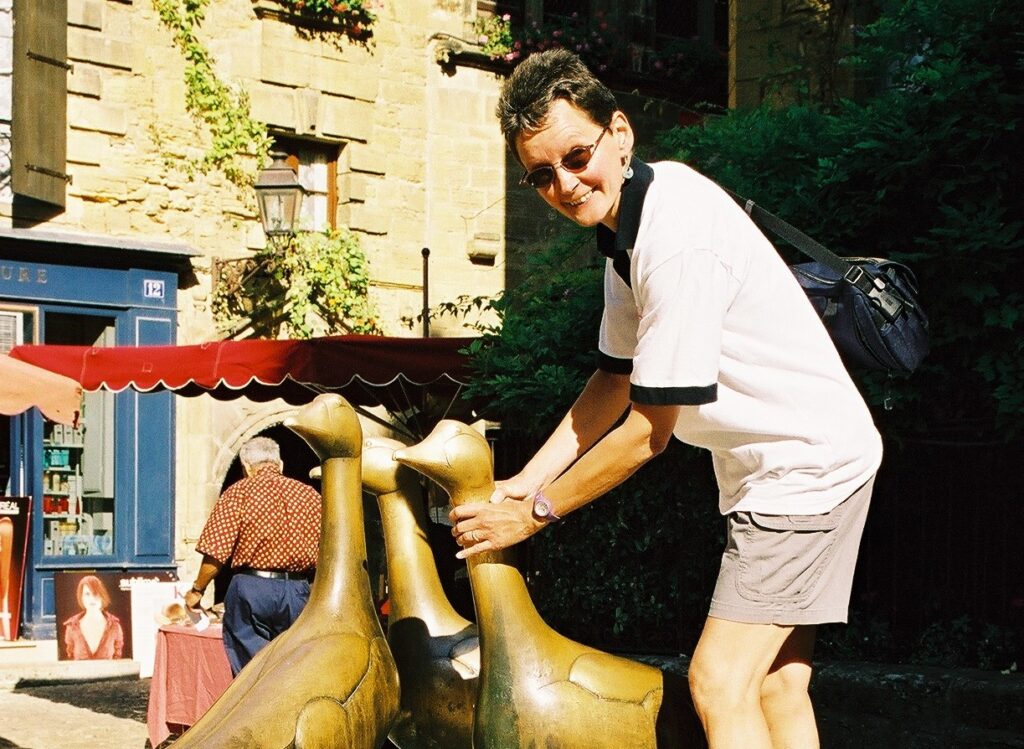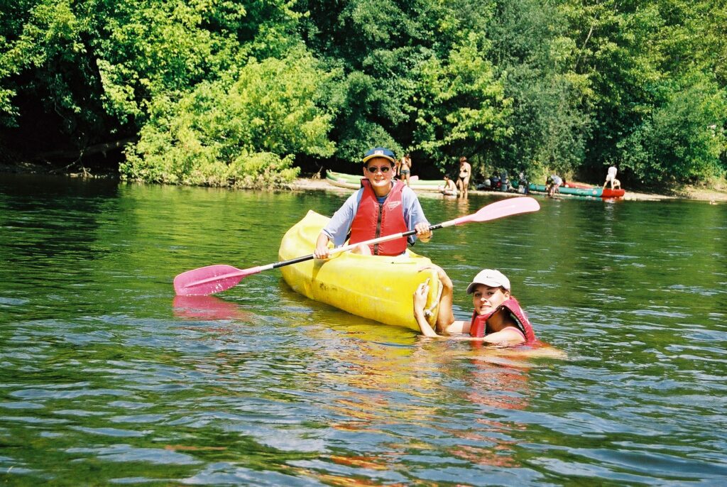 Family holiday July 2002. Saint Avit Loisirs, Le Bugue Dordogne. With a trip to Sarlat, famous for it’s fois-gras and a canoe down the river past the Chateau de Beynac