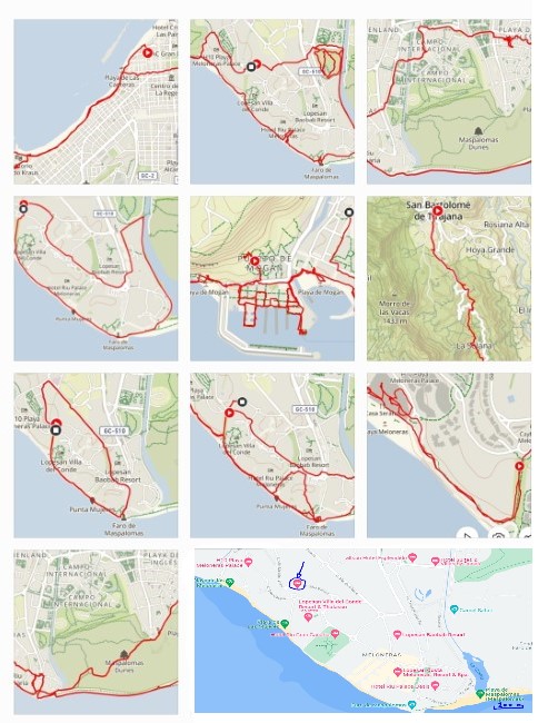 Again travelling by GuaGua, but not the late 32 direct, we catch the #1 service, completed in record time by a kamikaze driver taking no cyclists or hire car drivers prisoner. Route 32 is a circuit so returned via Playa del Ingles for coffee and tasty cake in a gilded cage. Nice to be able to give our parkrun friends a walking tour,