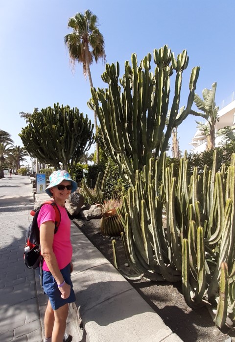 On Monday we start with a 15.99km walk along the windy seashore to Playa del Ingles. Meloneras is modern and swanky where p-d-I is more, er, traditional? We have a €20ish salad and chips to share for a late lunch. We return to hear C3 has a cancer diagnosis. No guesses to coming weeks media coverage. Lucky we’re out of the country,.