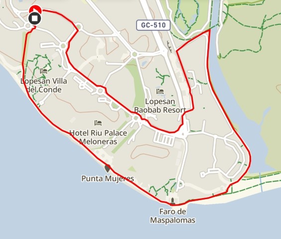 A start to the day with the promised warm weather training 4km run around Meloneras, and keeping in the spirit of running we arranged to meet ‘parkrun Aj & Kanny’ who know Wheelers Andrea & Min. Having found Ciao Ciao yesterday evening at the 80% empty shopping centre we return for our Caprese salad lunch with them. The mercadona 800m away sees us bump into our Finnish friend from day 1 at the alcohol aisle.
