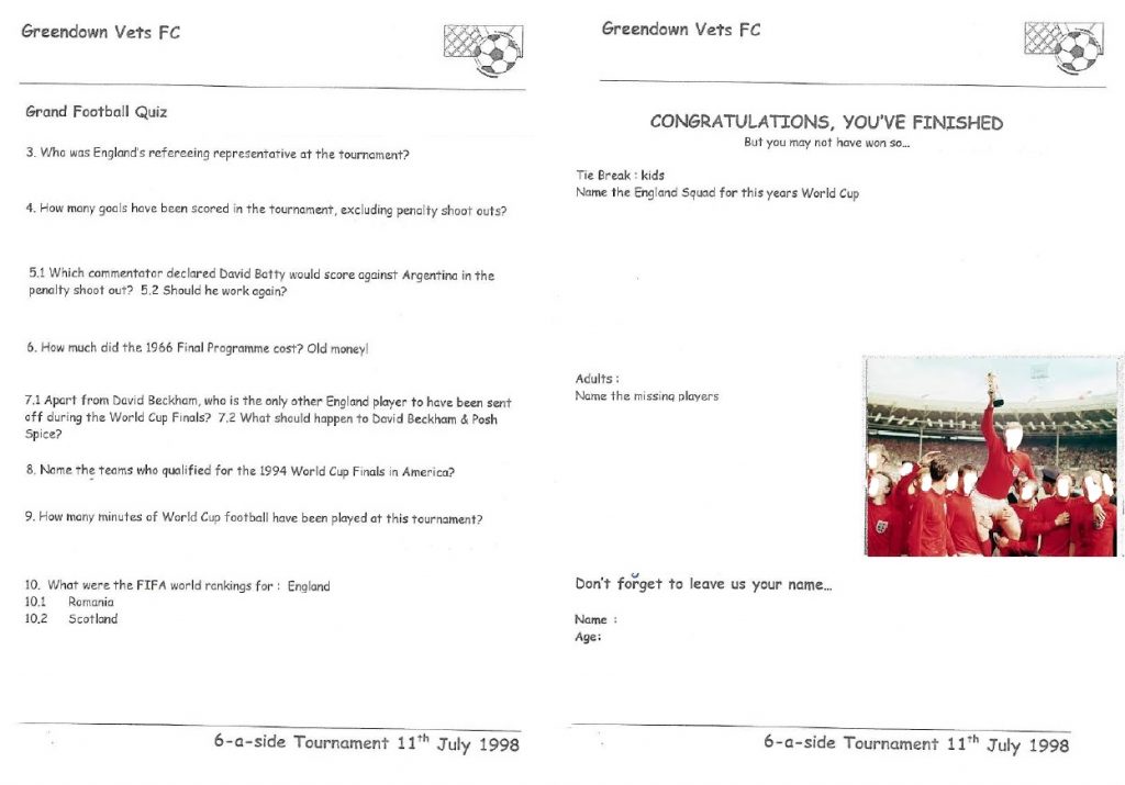 Click Here if you fancy a quiz… we held several tournaments from 1998 to 2002 – This is the quiz from the 1998 event.