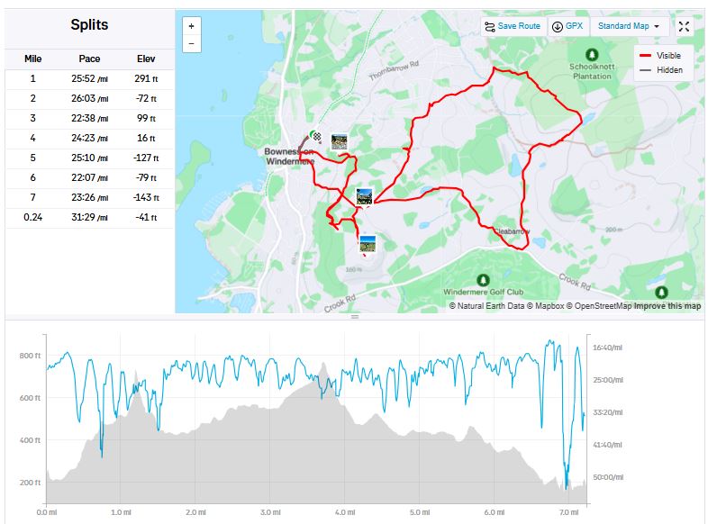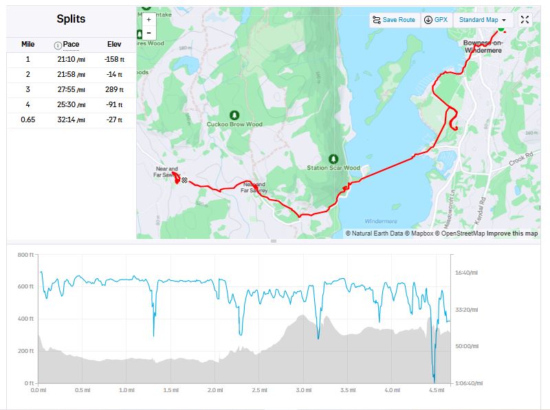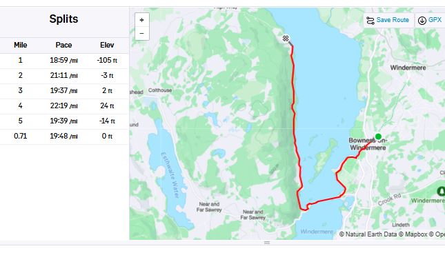 Rydal cottage in Bowness-on-Windermere. Arriving Friday to some dodgy looking weather we suffered a Saturday of rain – all but a remarkable dry 08.30 to 10.15 for Rothay Park parkrun – then were rewarded by a Sunday through to the following Friday of wall-to-wall sunshine.