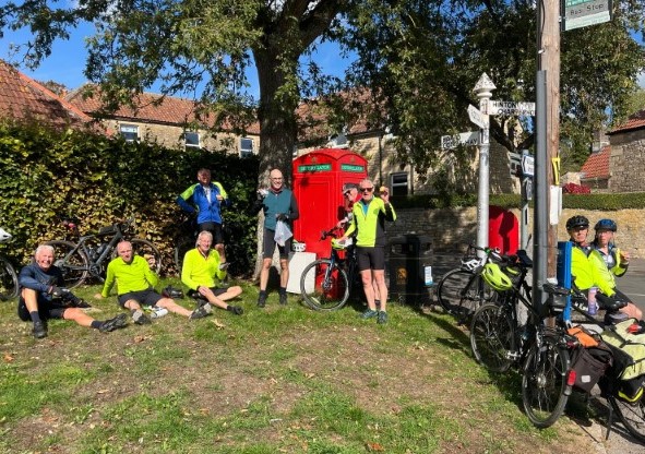With memories of a pork pie expedition in 2014 Devon coast to coast. Out by Garmin. The Pork Pie stop this time was by a defibrillator of course. On the way taking in the self-styled Chilcompton Border Force, a very pleasant outward journey and welcoming long descent to Wells.