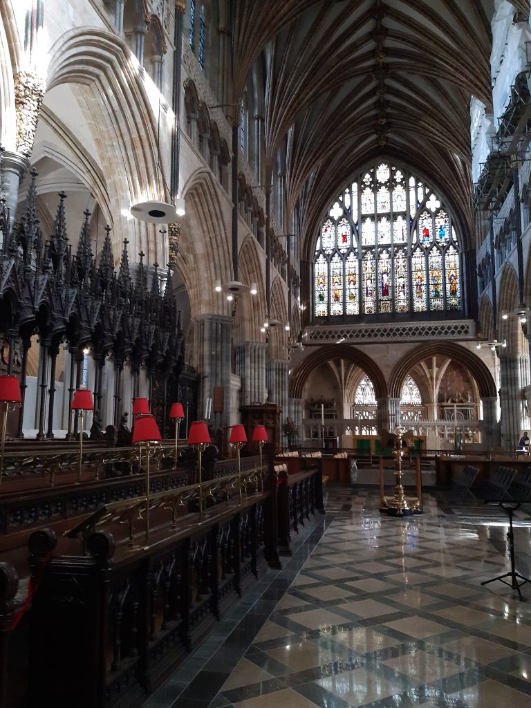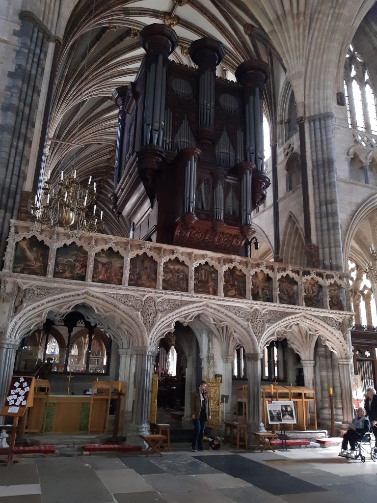 Tricky to find but a really well located AirBnB. We had a look at Agatha Christie’s, now NT, summer home Greenway, on the banks of the Dart river. The Bull gastropub served our meals on two nights, and we took a day trip to Exeter via Tiverton Parkway having misplaced someone’s cellphone. A quick scoot around Exeter cathedral had to be done, but although there was a door for the cat there was none in residence.